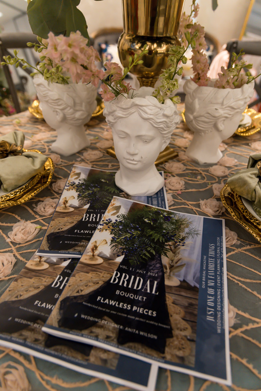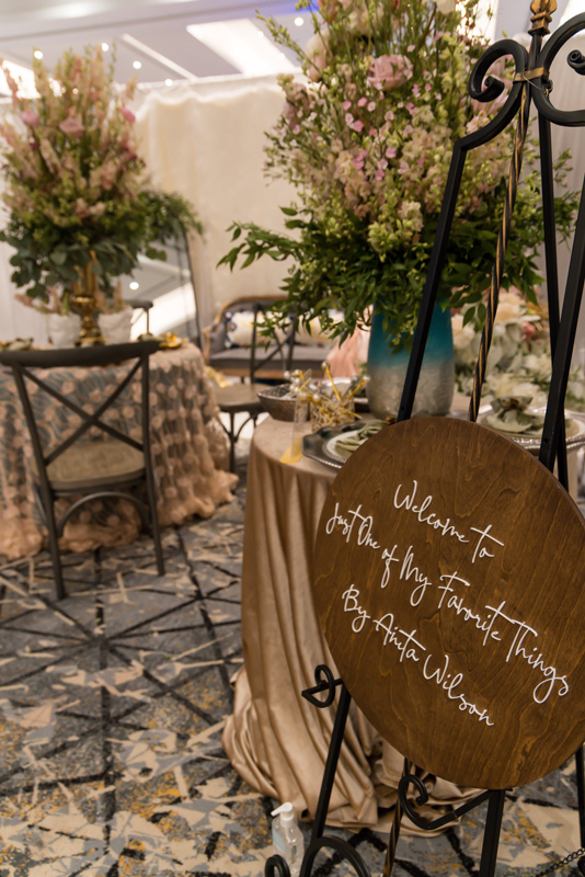 Floral Design/Arrangements: Anita Wilson Photography: Meraki Treasured Moments Bridal Bouquets: Meraki Treasured Moments Venue: The Hotel at Avalon Autograph Collection, Alpharetta Georgia Table Sign: Dear Amelia and CO