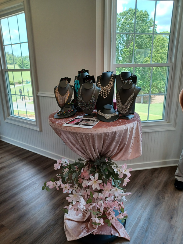 Event Planning: Anita Wilson Floral Design/Arrangements: Anita Wilson Venue: Hamilton Mill Golf Country Club, Georgia Chairs: Crimson TLC Rentals Table Sign: Dear Amelia and CO Live Music: RJ Music DJ: Manny Worldwide