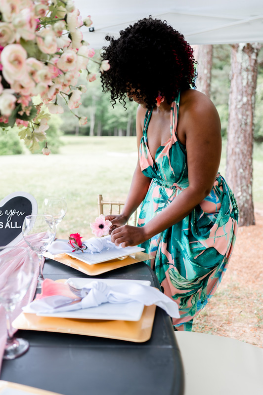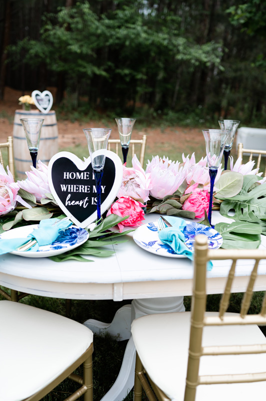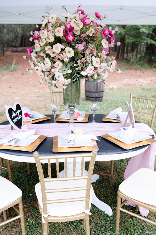Event Planning: Anita Wilson Floral Design/Arrangements: Anita Wilson Photography: Portraits of Joy Photography Venue: Little Mulberry Park, Dacula Georgia Table Sign: Dear Amelia and CO