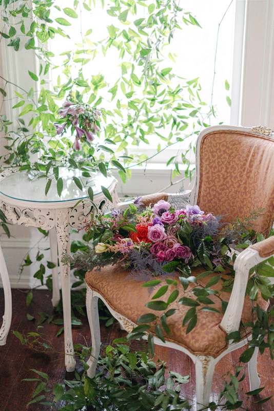 Floral Design/Arrangement: Anita Wilson Photography: Justine Berges Tablecloth Linens: Nuage Designs Stationary: RSVP Love Venue: Whitlock Inn, Marietta Georgia